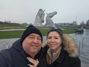 A caminho do norte, paramos em duas atrações impressionantes no distrito de Falkirk, uma região que combina natureza, tecnologia e mitologia escocesa.
